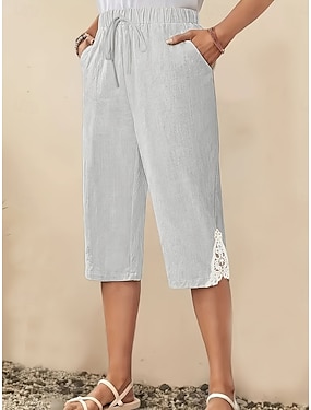 Dámské Capri kalhoty Imitace bavlny a lnu Kalhoty chinos Letní šortky Módní Šik ven Na běžné nošení Telecí délka Vysoký pas Bez vzoru Krajka Kapsy Elastický pas Pohodlný Yumuşak Pohodlné Lehce