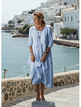 Dámské Maxi dlouhé šaty Imitace bavlny a lnu Volnočasové šaty Módní Základní Moderní Denní Dovolená Jdeme ven Volný Bez vzoru 3/4 délka rukávu Tričkový Vodní modrá Světlá růžová Rubínově červen