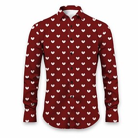 Valentýn Pánské Srdce Košile Košile na knoflíky Dlouhý rukáv Na běžné nošení Denní nošení Jdeme ven Podzim zima Přehnutý Tisk Tlačítko dolů Černá Bordó Vodní modrá Fialová Oranžová