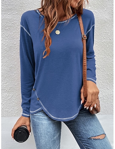 Dámské Halenka Pevná barva stylové Na běžné nošení Dlouhý rukáv Tričkový Běžné topy Denní Nabírané šaty Černá Vodní modrá Khaki Šedá Světle modrá Jaro Podzim Zima