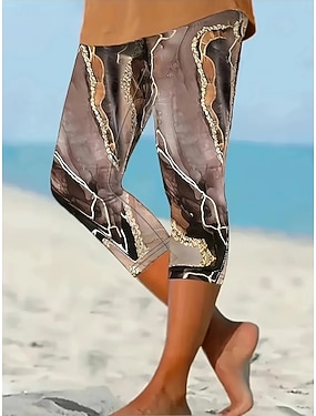 Dámské Capri kalhoty Legíny prázdniny Havajské stylové Délka kolen Středně vysoký pas Grafika Geometrický Tisk Pohodlné Elastické Venkovní Dovolená Formální Velbloudí Rubínově červená Léto Jaro Podzim