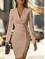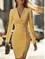 Dámské Mini šaty Zavazovací šaty Bodycon šaty Semiformální šaty Kancelář Běžný Bez vzoru Dlouhý rukáv Do V Černá Žlutá Světlá růžová Rubínově červená Jaro Podzim