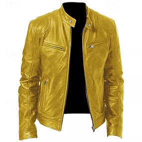 Pánské Deri Ceketler Blejzr Venkovní Denní nošení Zahřívací Větruvzdorné Podzim zima Bez vzoru Módní Šik ven Klopa Standardní Umělá kůže Černá Žlutá Fialová Tmavomodrá Saka