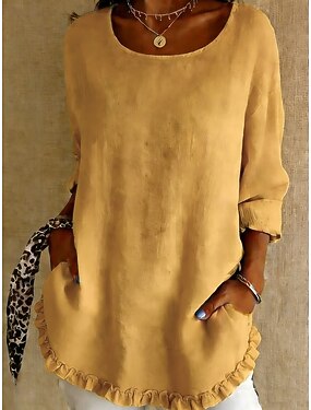Dámské Košile Halenka Imitace bavlny a lnu Volánková košile Volány Bez vzoru stylové Klasické Moderní Dlouhý rukáv Tričkový Běžné topy Denní Dovolená Jdeme ven Černá Bílá Žlutá Světlá růžová Armádn