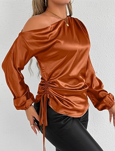Dámské Košile Elegantní Satén Saténová košile Pevná barva stylové Na běžné nošení Dlouhý rukáv studené rameno Běžné topy Denní Jdeme ven Asymetrický Žlutá Hnědá Jaro Podzim