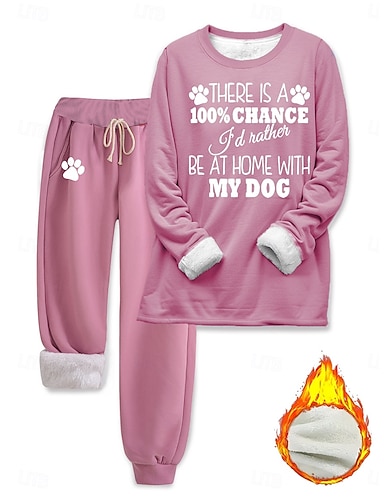 Dámská pyžamová sada fleece podšitá elegantní teplá módní dvoudílné soupravy teplákové soupravy kalhoty dlouhý rukáv kulatý výstřih grafika zvířecí nápis tisk venku každodenní černá tmavě růžová
