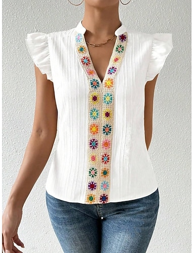 Dámské Košile Halenka Pevná barva stylové Na běžné nošení Bez rukávů Vroubkovaný krk Běžné topy Denní Výšivka Bílá Léto