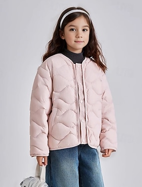 Děti Dívčí Dolů Puffer Jacket Pevná barva Módní Kapsy Škola Kabát Svrchní oděvy 4-12 let Podzim Světlá růžová Fialová Béžová