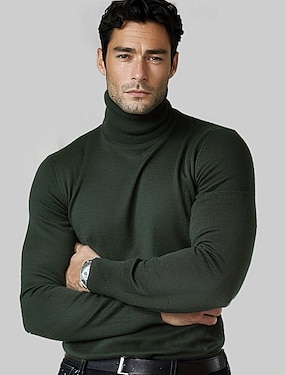 Pánské Pulovrový svetr Plést Pevná barva Rolák Úplet Elegantní Vánoce Venkovní Oblečení Podzim Zima Černá Rubínově červená S M L