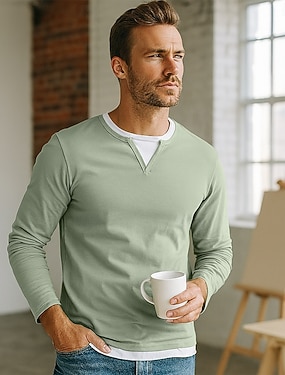 Pánské Tričko Dlouhý rukáv Tričkový Celý rok Pevná barva Úplet Denní Na běžné nošení falešný dva kusy Venkovní Dovolená Domů Černá Hnědá Trávová zelená Top tričko pro muže
