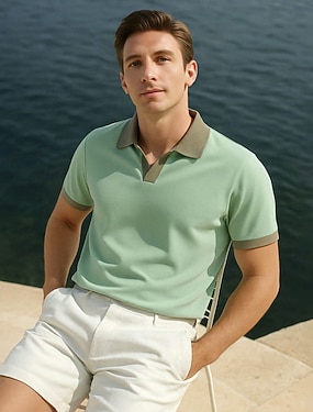 Pánské Pólo Pletené polo Formální Práce Přehnutý Krátký rukáv Pevná barva Barevné bloky Jaro Černá Bílá Světle zelená Šedá Pólo