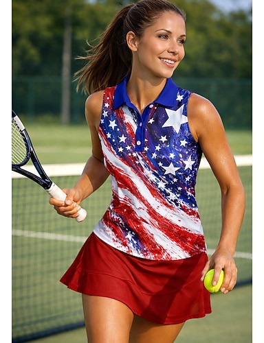 Den nezávislosti 250. výročí Ameriky Dámské Grafika Vlastnosti Sportovní košile Tenisové polokošile Tílka Bez rukávů Elastický Ter Emen Prodyšné Tenis Golf Pickleball Košilový límec Bez rukávů Bílá