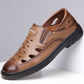 Pánské hnědé kožené sandály s prodyšným výřezem - pohodlná obuv na léto, pláž a outdoorové aktivity