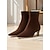 Dámské hnědé semišové kotníkové boty se špičatou špičkou a nízkým podpatkem, elegantní podzimní a zimní obuv pro neformální i formální outfity.