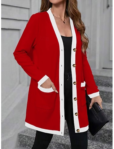 Dámské Neformální bunda Pohodlné Prodyšné Kapsy Knoflíky Na běžné nošení Bez vzoru Dovolená ulice Ležérní Denní nošení Jednořadé Dlouhé Do V Běžný Dlouhý rukáv Svrchní oděvy Černá Fialová Rubínov
