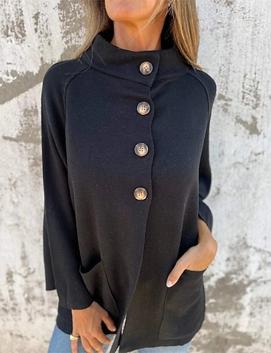Dámské Neformální bunda Pohodlné Prodyšné Slátanina Knoflíky Elegantní Na běžné nošení Bez vzoru Dovolená ulice Ležérní Denní nošení Otevřený vepředu Dlouhé Stojáček Běžný Dlouhý rukáv Svrchní oděvy