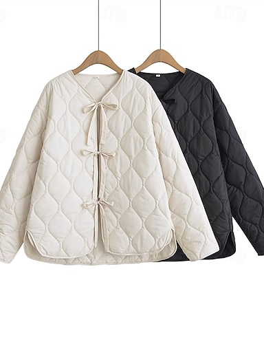 Dámské Zimní bunda Kabát Zahřívací Pohodlné kravata vpředu Módní Moderní Na běžné nošení Bez vzoru Jdeme ven Víkend Kardigan Standardní Do V Běžný Dlouhý rukáv Svrchní oděvy Černá Béžová Zima