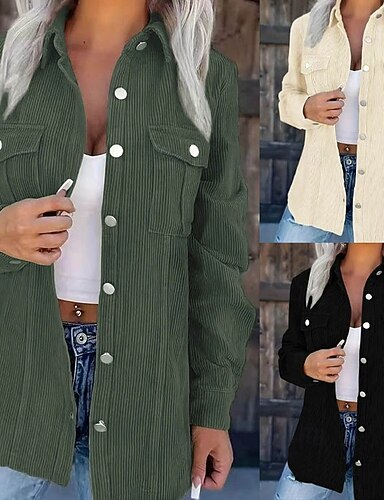 Dámské Neformální bunda Zahřívací Pohodlné Kapsy Knoflíky Módní Venkovní Bez vzoru Jdeme ven Víkend Jednořadé Standardní Klopa Běžný Dlouhý rukáv Svrchní oděvy Černá Bílá Trávová zelená Podzim Zima