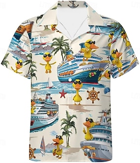 Pánské Legrační Kachna Výletní loď Košile Kubánská košile Havajská košile Krátký rukáv Havajské Dovolená Oblečení na pláž Léto Jaro límec dědečka Stojáček Košile s límečkem Camp 3D tisk Béžová