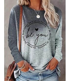 Dámské tričko s dlouhým rukávem kulatý výstřih dlouhá tunika neformální potisk běžné topy každodenní víkendové šedá jaro a podzim předpodzim