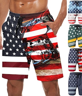 Pánské grafické tištěné národní vlajkové plavky vázací plavky střední pas havajské boho příležitostné každodenní prázdniny vázání s síťovou podšívkou elastický pas designér.