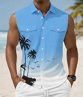 Pánské Kokosový strom Barva přechodu Tropické rostliny Košile Havajská košile Aloha košile Bez rukávů Letovisko Plážová dovolená Léto Jaro Přehnutý 3D tisk Přední dvě kapsy Košile na knoflíky Vodn