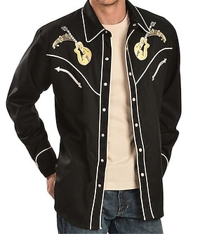 Pánské Grafické tisky Kytara Košile Westernová košile Kovbojská košile Dlouhý rukáv Módní Designové Na běžné nošení Denní Venkovní Podzim zima Přehnutý Tisk Tlačítko dolů Černá Černá / zelená Světle
