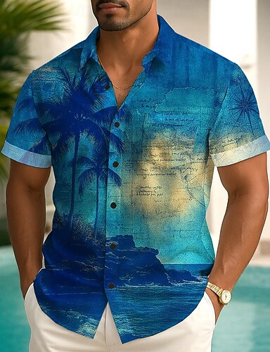 Pánské Námořnický Mraky Plachetnice Košile Letní košile Košile na knoflíky Krátký rukáv Vintage Retro Venkovní Dovolená Na den Léto Jaro Přehnutý 3D tisk košile s límečkem Olivová