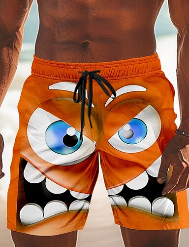 Pánské 3D komiks Smajlík Velké oči Plavecké trenýrky Plavky pánské Surfovací šortky Středně vysoký pas Legrační Venkovní Dovolená Na den Boční kapsy Podšívka ze síťoviny Elastická šňůrka v pase