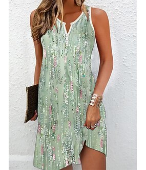 Dámské mini šaty Petite šaty T shirt šaty Tee šaty Sundress Letní šaty Aktivní Móda Streetwear Outdoor Dovolená Casual Pravidelný střih Potisk Bez rukávů Rozdělený výstřih Fialová Zelená Léto