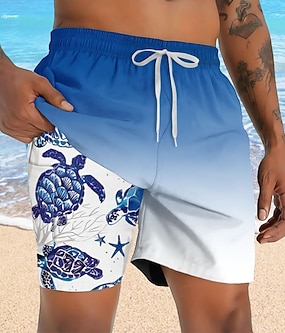 Pánské Barva přechodu Želvy Podšívané šortky Plavecké šortky 2v1 Plavky pánské Středně vysoký pas Havajské Dovolená Oblečení na pláž Boční kapsy S kompresní vložkou Elastická šňůrka v pase Návrhář