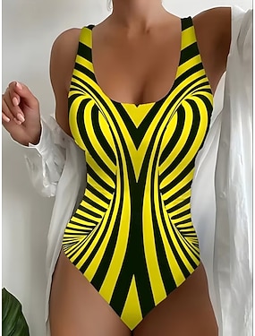 Dámské Plavky Jeden kus Monokini Slipy Plavky Zaštíhlující Vysoký pas Volná záda prázdniny Oblečení na pláž Grafika Proužky Do U Bez rukávů Plavky