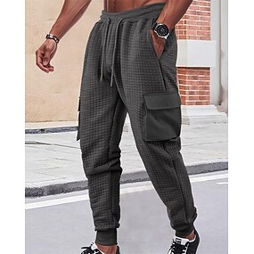 Pánské Vaflová Kargo kalhoty Nákladní tepláky Kalhoty Tepláky s rovnými nohama Šňůrky Elastický pas Multi kapsa Bez vzoru Odvod vlhkosti Prodyšné Plná délka Outdoorové sporty Ležérní Denní prázdniny
