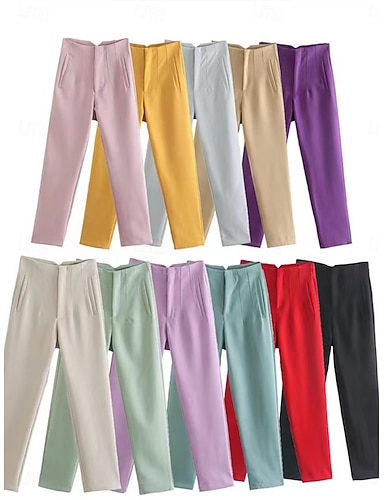 Dámské Kalhoty chinos Kalhoty s rovnými nohama Módní Šik ven Základní Plná délka Vysoký pas Bez vzoru Kapsy Pohodlný Pohodlné Yumuşak Lehce elastické Venkovní Práce ulice Vodní modrá Černá Bíl