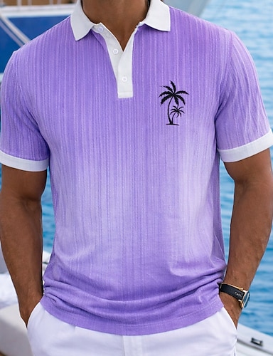 Pánské Palma Kyselé mycí tričko 100% Bawełna Krátký rukáv Polo tričko Klopa Havajské Na běžné nošení Oblečení na atletiku Oblečení na dovolenou Kapsy 3D tisk Knoflíky Jaro léto Vodní modrá Rubínov