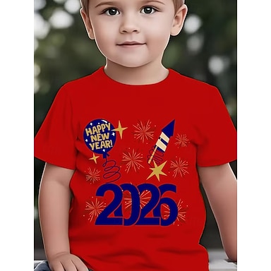 Chlapecké 3D tričko s potiskem na Silvestra 2026 s krátkým rukávem, 3D tiskem, léto, jaro, sportovní, módní, streetwear, děti 4-12 let, kulatý výstřih, outdoor, ležérní, denní, standardní střih