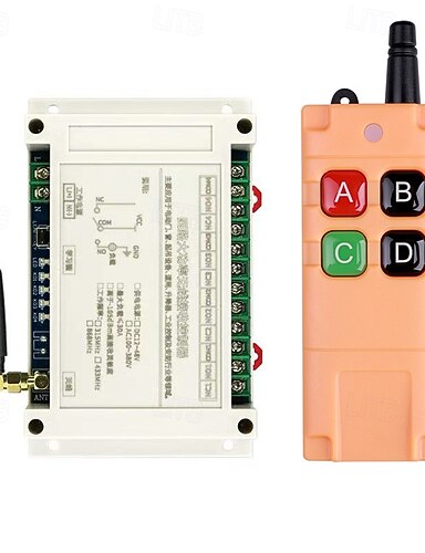 Sada bezdrátového dálkového ovládání s vysokým výkonem 30A, DC 12V 24V 36V 48V, 4kanálový RF reléový přijímač s dálkovým ovládáním ABCD s dlouhým dosahem, univerzální vysoce výkonné ovládání pro
