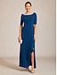 Dámské Maxi šaty Plášťové šaty Empírové šaty do pasu Elegantní Večerní oslava Koktejlový večírek Nabírané šaty Přikrášlený Rozparek Běžný Pevná barva 3/4 délka rukávu Tričkový Břidlicová modrá