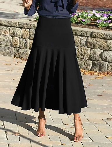 dámská sukně houpačka pracovní sukně dlouhá sukně maxi sukně plisovaná patchwork jednobarevná kancelář / kariéra podzim / podzim šifon satén elegantní základní letní černá růžová modrá zelená