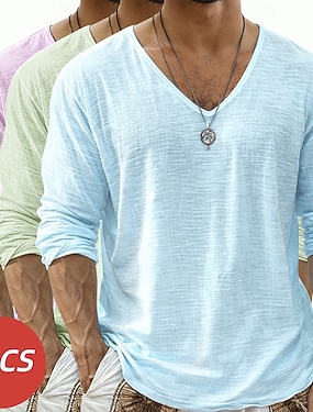 Pánské 3dílné lněné tričko s dlouhým rukávem, výstřihem do V, léto, jaro, jaro &letní jednobarevné jednoduché denní ležérní pouliční styl 3dílné jednoduché vícedílné balení ležérní outdoor pouliční