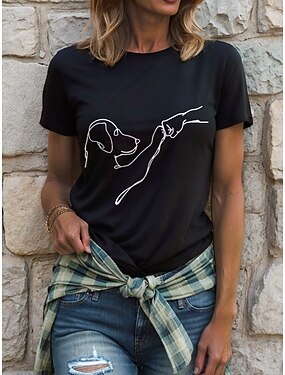 Dámské Tričko Tisk Grafika Zvíře Pes Vinobraní stylové Klasické Krátký rukáv Tričkový Kulatý Běžné topy Denní Víkend Vodní modrá Černobílá Bílá / černá Bílá Světlá růžová Léto Jaro