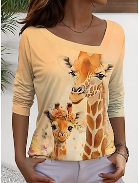 Dámské Tričko Tisk Grafika Zvíře Vinobraní Na běžné nošení Dlouhý rukáv Asymetrický krk Běžné topy Denní Bílá Žlutá Oranžová Khaki Léto Jaro Podzim