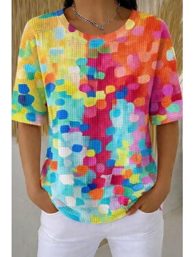 Dámské Vaflové tričko Texturované pletené topy Letní vrcholy Grafika Geometrický stylové Klasické Krátký rukáv Tričkový Kulatý Běžné topy Ležérní Denní Bílá v modrá Žlutá Duhová Léto Jaro Podzim