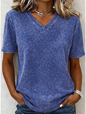 Dámské tričko bavlna kyselinové praní vintage móda stylové krátký rukáv výstřih do V běžné tílko ležérní denní na rande modrá fialová / modrá černá fialová oranžová léto jaro