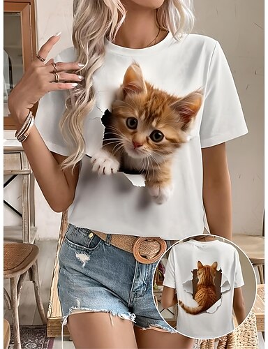 dámské tričko móda kočičí potisk krátký rukáv běžné topy kulatý výstřih denní víkend bílé léto 3d cat