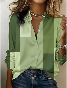 Dámské Košile Grafika Geometrický Barevné bloky Vinobraní stylové Moderní Dlouhý rukáv Košilový límec Běžné topy Denní Dovolená Světle fialová Oranžová Trávová zelená Léto Jaro