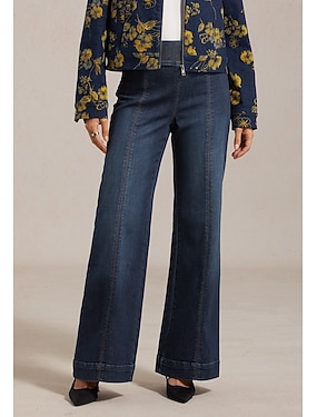 Dámské džínové kalhoty se širokými nohavicemi, strečové, elastické, v pase, zeštíhlující, ležérní, na dovolenou, denně, jaro, léto, podzim