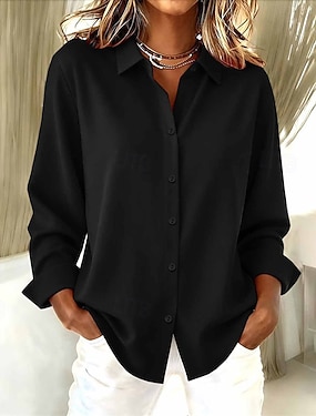 Dámské Košile Knoflíky Pevná barva Bez vzoru Elegantní stylové Na běžné nošení Dlouhý rukáv Košilový límec Běžné topy Denní Práce Jdeme ven Vodní modrá Světle modrá Černá Bílá Rubínově červená Léto
