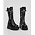 dámské černé kozačky s mohutným podpatkem a podrážkou – retro kozačky do půlky lýtek z umělé kůže na podzim a zimu