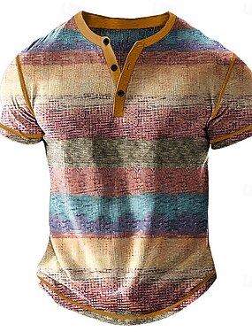 Pánské Duhová Proužky Tričko Henley Waffle Tričko Krátký rukáv Denní Retro Klasické Outdoorové sporty Ležérní Dovolená Jaro léto Celý rok Vodní modrá Fialová Khaki Světle šedá Henley Tričko Henley